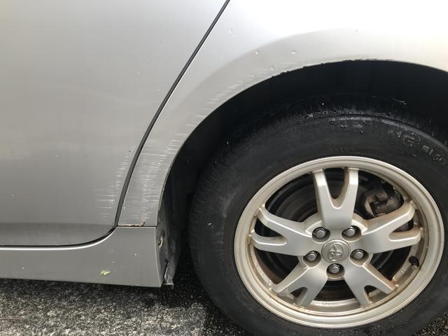 写真の通り、後部左側を擦っていて、バンパーが少し浮いてます。また、後部左側のドアを開けたときに見えるパッキンのようなものが外れる事があり、ドアが閉めづらくなる時があります。