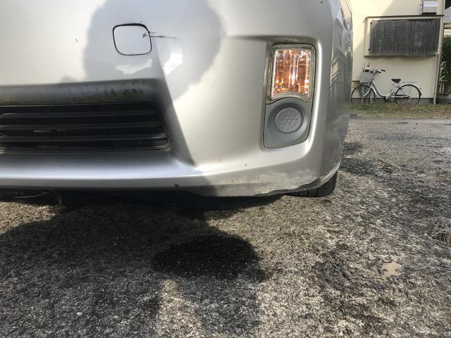 写真を添付しましたが、前部左側のバンパー下側も擦っています。
