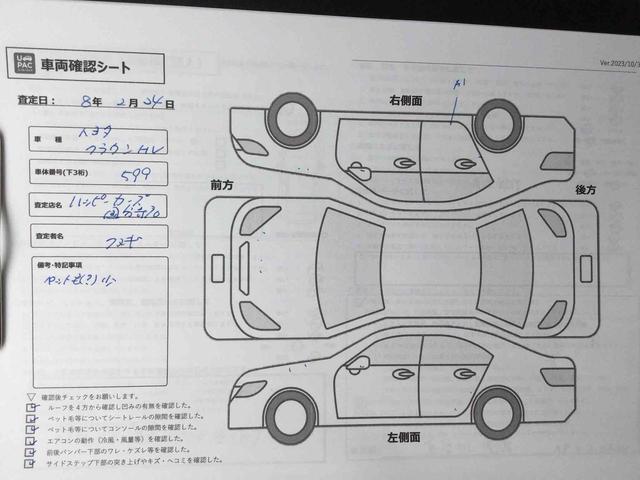 ・左フロントフェンダー - タッチP小 ・左フロントフェンダー - UA小 ・ボンネット - E ・右リヤドア - A小 ・左前タイヤ - 車検対応 ・右前タイヤ - 車検対応 ・左後タイヤ - 車検対応 ・右後タイヤ - 車検対応 ・左リヤドア - XX ・左リヤフェンダー - BP ・右リヤフェンダー - BP ・トランクリッド/リヤゲート - XX ・トランクリッド/リヤゲート - A ・フロントバンパー - E ・ミラー - A ・左前ホイール - A ・左後ホイール - A ・右後ホイール - A