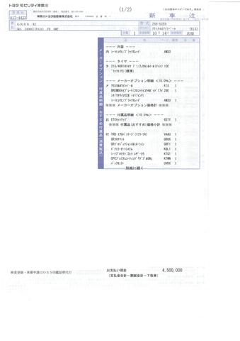 レジャー用で購入しましたが、殆ど使用しませんでした。 駐車時はカバーをかけて保管しています。 オプションパーツは、TRDエアロパッケージやBREMBOブレーキ等、任意画像で掲載している注文書内容の通りです。 ※掲載写真について 右側面の写真の背景が違うのは、他の写真を撮影時に撮り忘れたため、当日に違う場所で撮影しているためです。