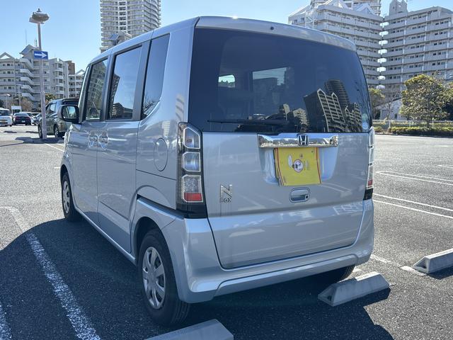 後ろのNBOXのロゴに雨の滴りが染み付いてます。